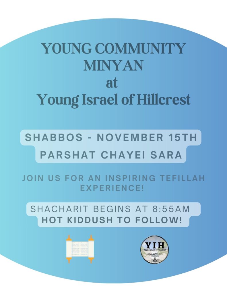 YOUNG COMMUNITY MINYAN – Shabbos, Nov 15, 2025 @ 8:55 AM – Hot Kiddush to follow / Uncategorized / By Susan Bernstein